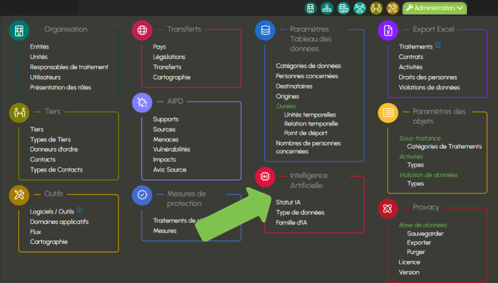 L'administrateur Provacy a la main pour personnaliser ces champs depuis le menu Administration :