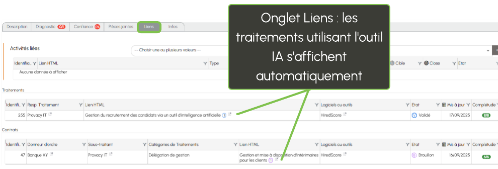 - retrouver les traitements associés depuis la liste des Systèmes d’IA.