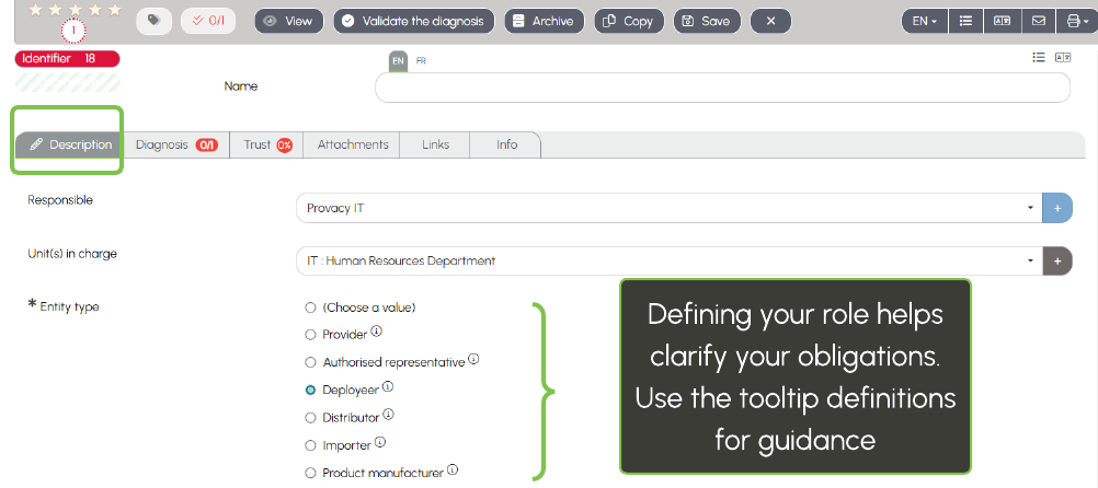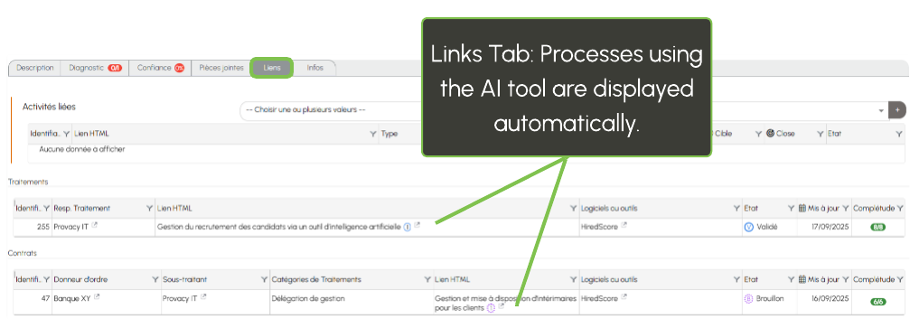 By creating your system in Software/Tool, you can link it to your processing forms when they involve personal data. This will allow you to: