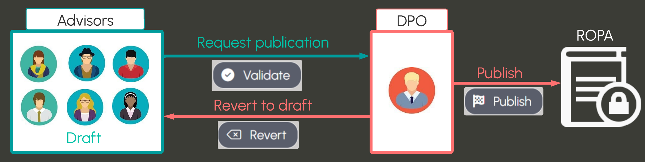 - By default, only the DPO can publish forms to the ROPA, but DPO assistants can support them.