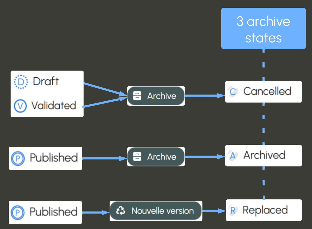 - As long as the form has not been published, its state will be Cancelled after archiving.