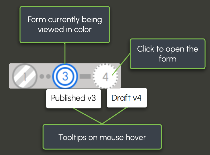 From each form, a version and status indicator is always visible in the toolbar.