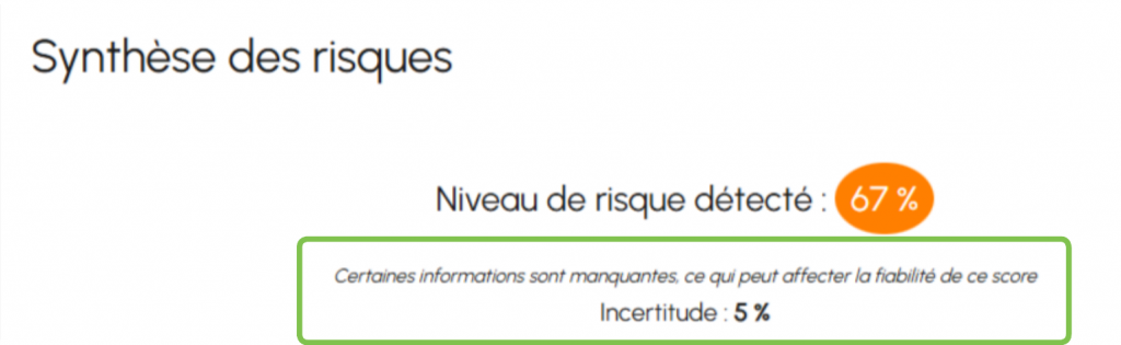 Lorsque certaines informations ne sont pas renseignées dans la fiche, le logiciel affiche un niveau d’incertitude.