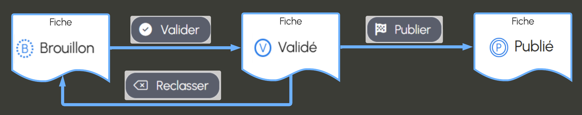 Chaque menu suit un workflow standard et facilite le travail collaboratif sur les fiches.
