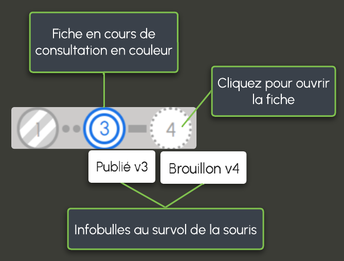 Depuis chaque fiche, un indicateur de version et de statut est toujours visible dans la barre d’outils.
