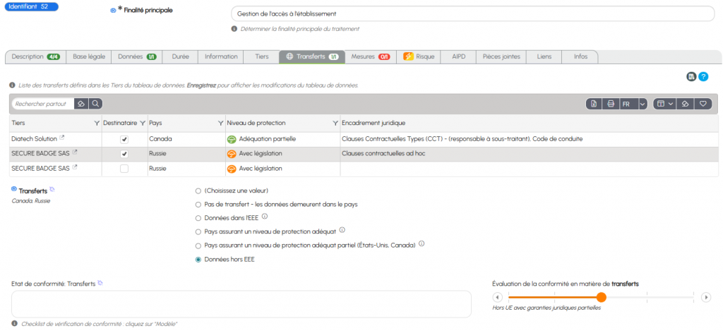 - Créez les transferts en indiquant, via les cases à cocher, si le tiers exporte des données, en importe, ou les deux.